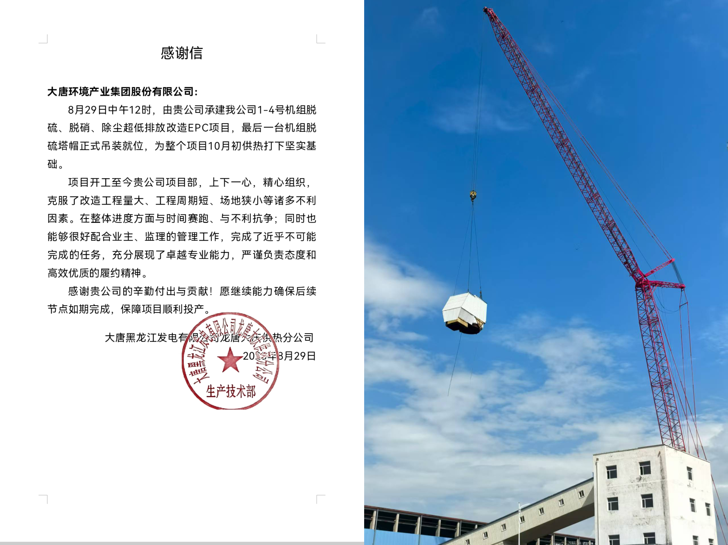項目的關(guān)鍵節(jié)點突破,不僅彰顯了環(huán)保分公司在超低排放改造領(lǐng)域的卓越專業(yè)實力、嚴謹施工態(tài)度與高效履約精神,更贏得了業(yè)主高度認可。龍?zhí)拼髴c供熱分公司特意發(fā)來感謝信,對項目部辛勤付出與突出貢獻表示感謝,并期待雙方繼續(xù)攜手,確保后續(xù)節(jié)點如期完成,保障項目順利投產(chǎn),共同守護區(qū)域生態(tài)環(huán)境與冬季民生供暖安全。