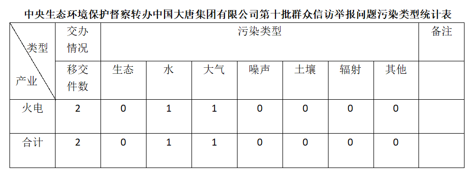 2025年6月13日,中央第七生態(tài)環(huán)境保護(hù)督察組向中國(guó)大唐集團(tuán)有限公司移交第十批群眾信訪舉報(bào)件,共計(jì)2件,均為來(lái)電舉報(bào),涉及水問(wèn)題1個(gè)、大氣問(wèn)題1個(gè)。所有舉報(bào)件辦理工作已第一時(shí)間進(jìn)入調(diào)查核實(shí)辦理程序,辦理情況將按照相關(guān)要求反饋督察組,并及時(shí)向社會(huì)公開。
