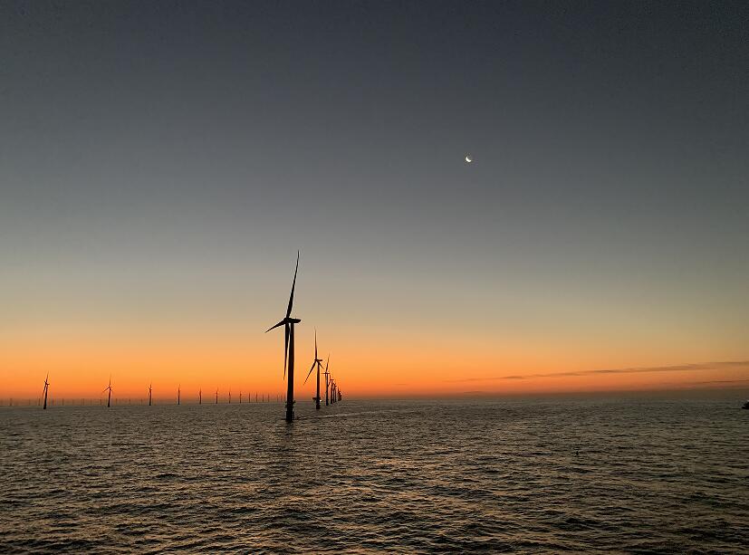 日月同輝的濱海海上風(fēng)電場(chǎng)(遲慶華/攝)