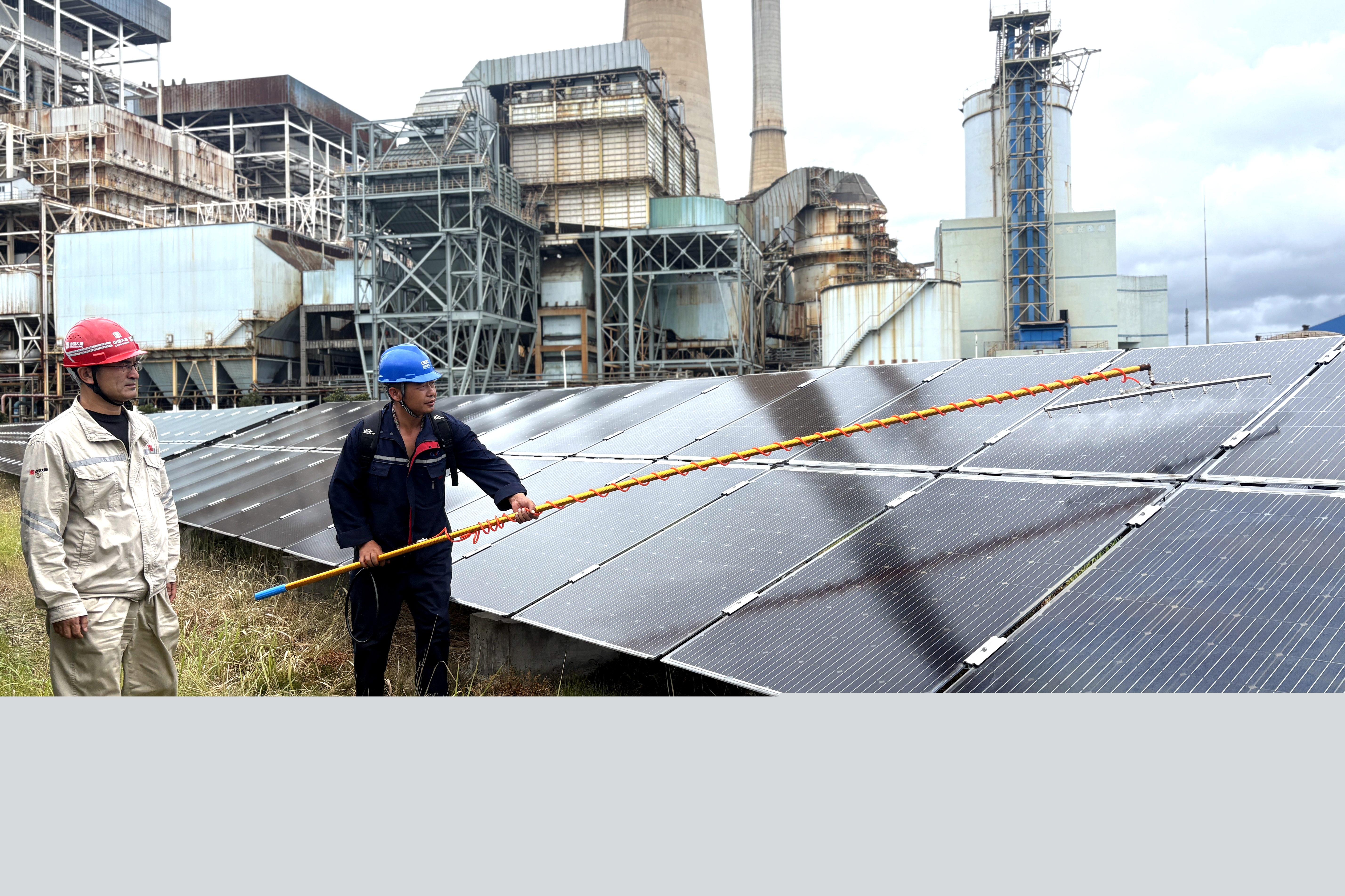 浙江新能源公司烏沙山廠區(qū)光伏電站位于火電廠生產(chǎn)區(qū)域二期場地,這里常年彌漫著白色蒸汽。蒸汽遇冷凝結(jié)后,會(huì)形成“石膏雨”,在光伏板表面結(jié)成水漬般的污垢。過去,該公司采用“人工+機(jī)器人”的清潔方式,往往剛清洗完畢,“石膏雨”便又隨之落下,最多三天,光伏板就會(huì)和未清洗時(shí)一樣。不僅如此,每次清潔時(shí)必須使用專用清洗劑,每塊光伏板要清洗5遍以上,但“細(xì)心呵護(hù)”后發(fā)電效率依舊不理想。“組件清洗就是治標(biāo)不治本,不加以重點(diǎn)防治,清洗也是徒勞?!睂幉▍^(qū)域運(yùn)維中心主任曹魯心感慨道。